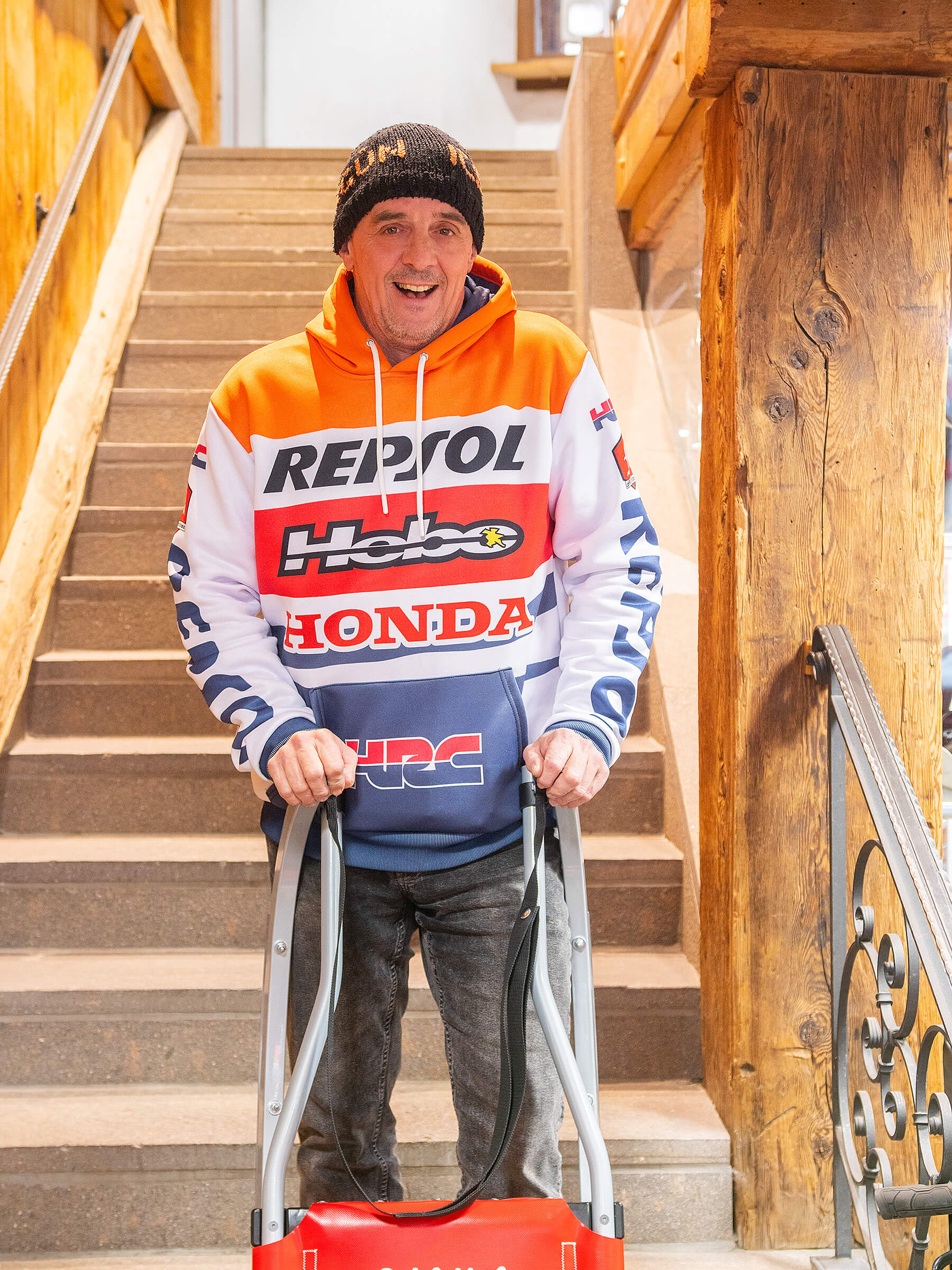 Unser Mann für alles, der jede Schraube kennt, ist unerlässlich, wenn Schnee und Wetter die Besucher zur perfekten Schlittenabfahrt aus dem Tal rufen.